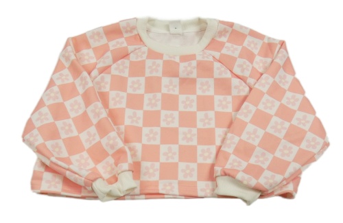 Korálovo-smetanová kostkovaná oversize crop mikina s květy