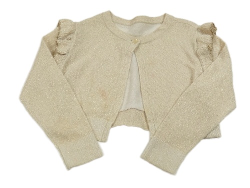 Béžové třpytivé svetrové bolerko s volánky Dunnes
