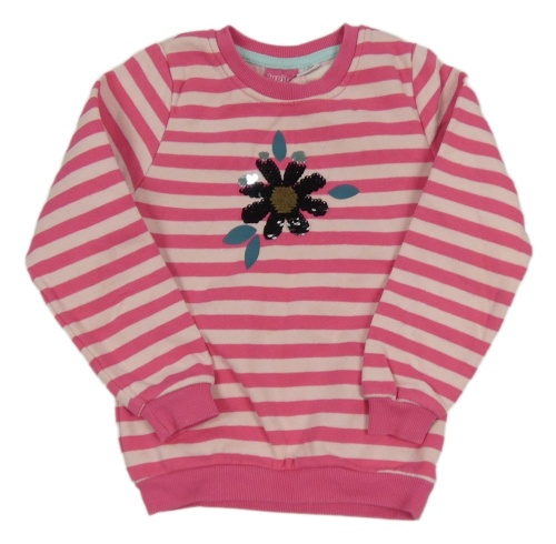 Tmavorůžovo-světlerůžová pruhovaná mikina s květem z flitrů lupilu