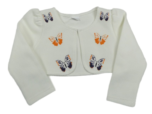 Bílé žebrované bolerko s motýly