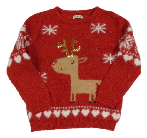 Červený melírovaný svetr se sobem s flitry a vločkami a srdíčky a třpytkami F&F