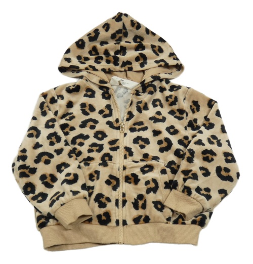 Béžová plyšová propínací mikina s leopardím vzorem a kapucí H&M