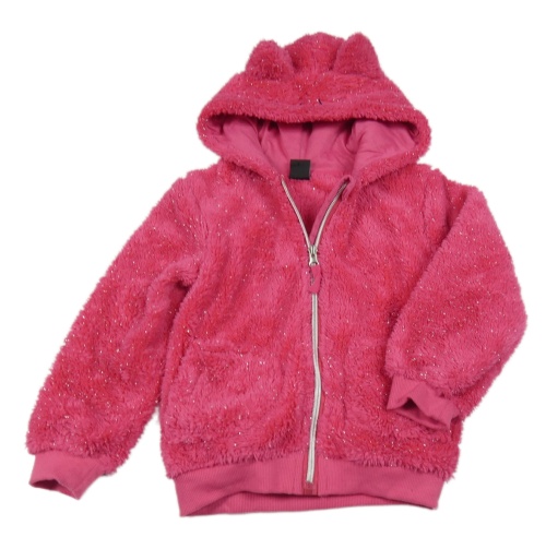 Fuchsiová chlupatá třpytivá propínací mikina s kapucí a čumákem Kiki&Koko