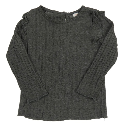 Tmavošedé melírované žebrované triko s volánky LC WaIKIKI
