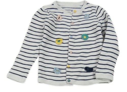 Bílo-tmavomodrý pruhovaný propínací svetr s kytičkami Mothercare