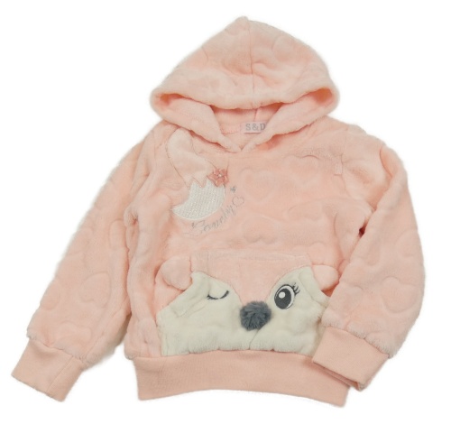 Světlerůžová chlupatá mikina s liškou a kapucí