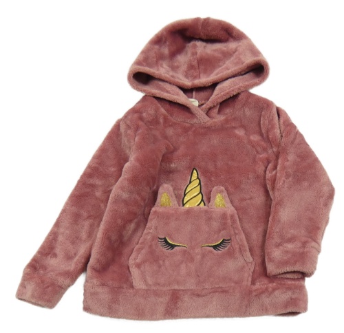 Starorůžová plyšová mikina s jednorožcem/kapsou a kapucí