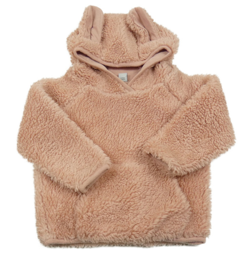 Pudrová huňatá podšitá mikina s kapsou a kapucí s oušky Tu
