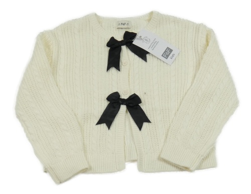 Nové - smetanový vzorovaný žebrovaný propínací oversize crop svetr s mašlemi F&F