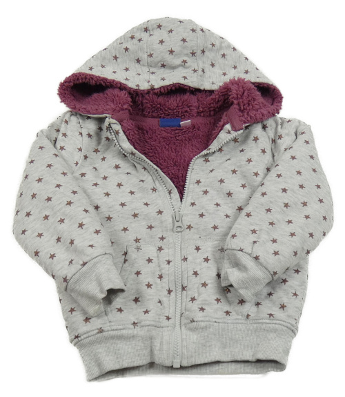 Šedá melírovaná propínací zateplená mikina s hvězdičkami a kapucí lupilu