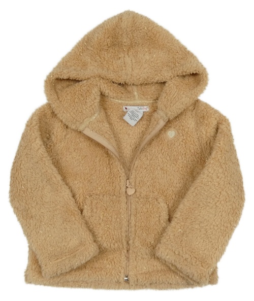 Béžovo-zlatá chlupatá propínací mikina s kapucí