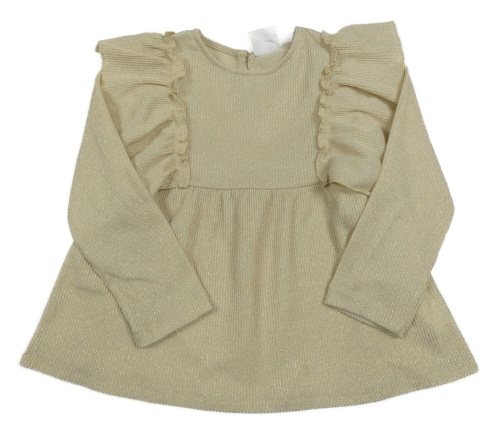 Smetanovo-zlatá pruhovaná úpletová tunika s volánky ZARA