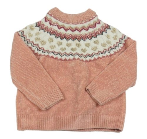 Růžovo-bílý žinylkový svetr se vzorem C&A
