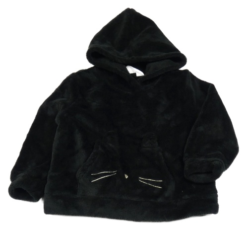 Černá plyšová mikina s kočičkou/kapsou a kapucí H&M