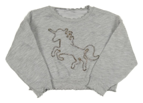 Světlešedá crop mikina s jednorožcem z kamínků M&Co.
