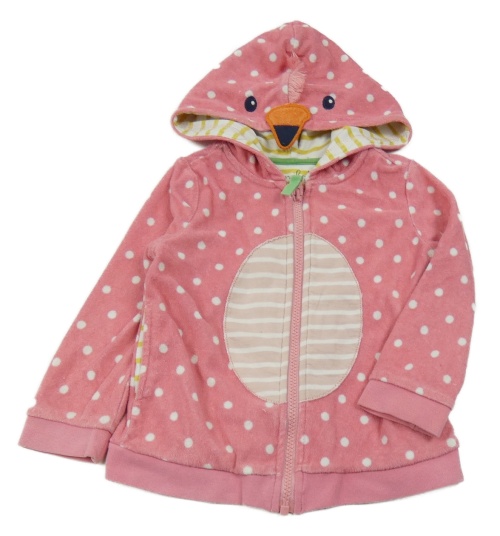Růžová puntíkatá froté propínací mikina s kapucí s čumákem Mini Boden