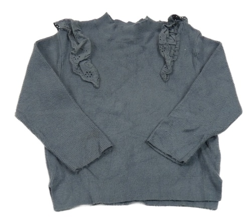 Tmavošedý žebrovaný svetr s madeirovými volánky Zara