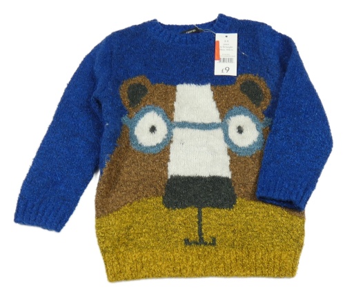 Nové - safírovo-okrový melírovaný svetr s medvídkem George