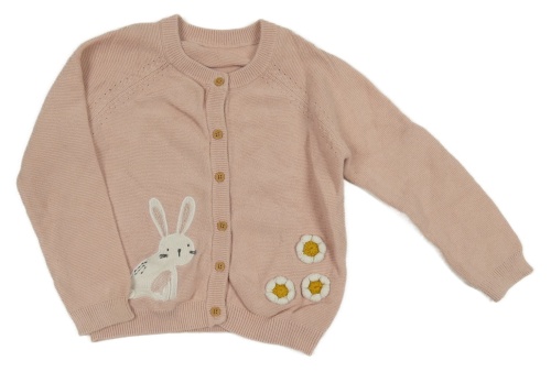 Růžový propínací svetr s králíkem a 3D květy George