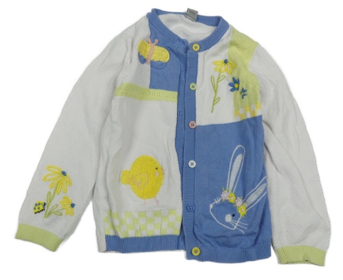 Bílo-modro-limetkový propínací svetr se zvířátky Tu