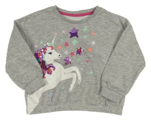 Šedá melírovaná oversize mikina s jednorožcem a flitry