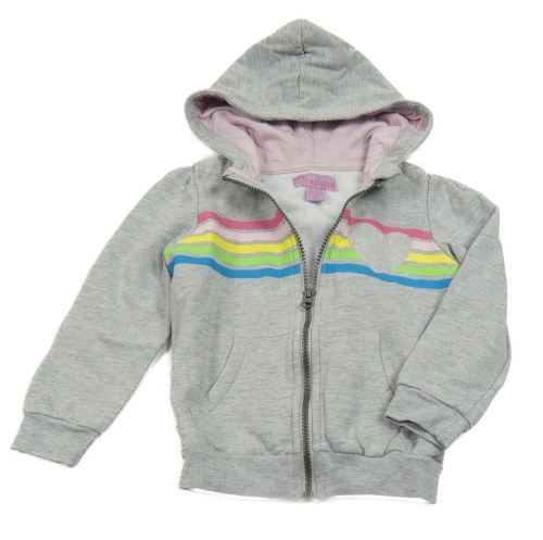 Šedá melírovaná propínací mikina s pruhy se srdcem a kapucí Pocopiano