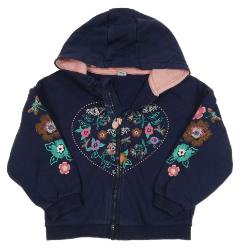 Tmavomodrá propínací mikina se srdcem a květy a kapucí Tu