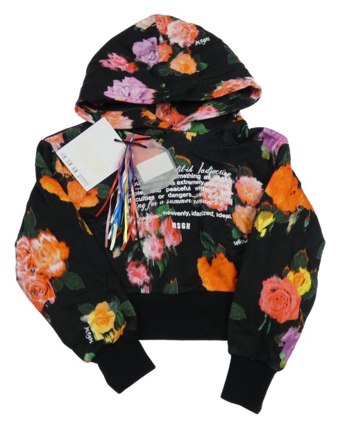 Nové - Černá květinová crop mikina s nápisem a kapucí