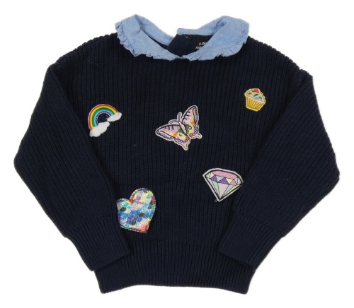 Tmavomodrý žebrovaný svetr s nášivkami límečkem Monoprix