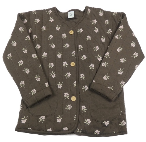 Tmavohnědá prošívaná/žebrovaná propínací vyteplená mikina s kytičkami Tu