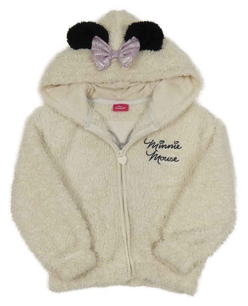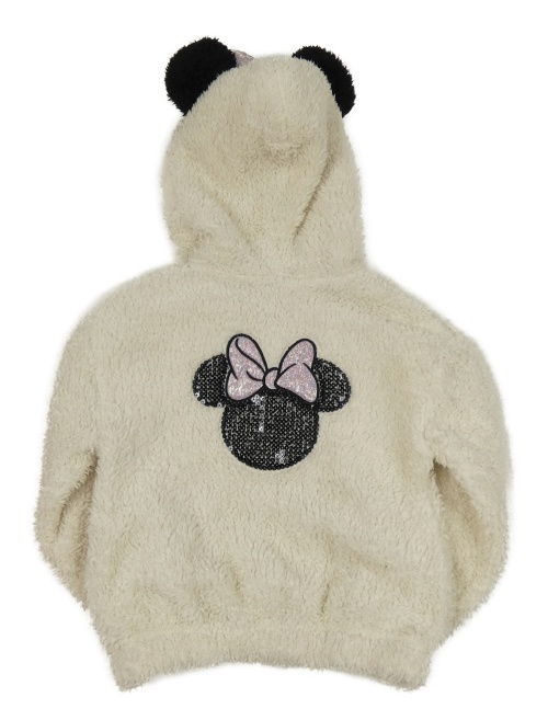 Smetanová chlupatá propínací mikina s nápisem a kapucí- Minnie Disney