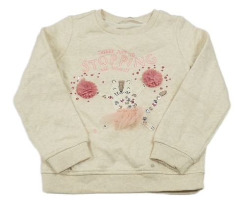 Světlebéžová melírovaná mikina s kočičkou a flitry a nápisy M&S