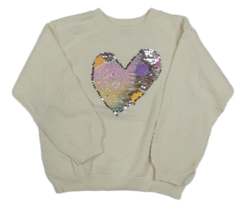 Smetanový vzorovaný svetr se srdcem z flitrů H&M
