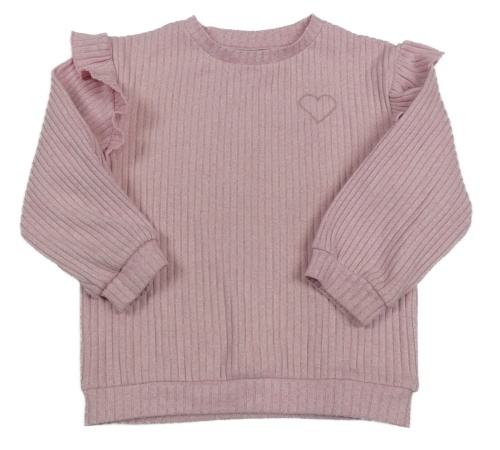 Růžová melírovaná žebrovaná úpletová mikina se srdíčkem a volánky Tu