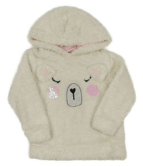 Smetanová třpytivá chlupatá mikina s medvídkem s flitry a kapucí George