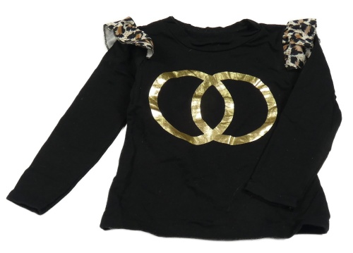 Černá mikina s kruhy a volánky s leopardím vzorem