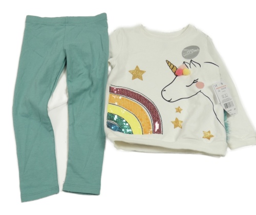 Nové - 2x bílá mikina s jednorožcem + zelené legíny F&F