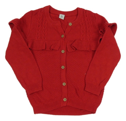 Červený propínací svetr s volánkem Tu