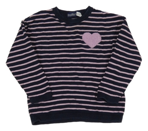 Tmavomodro-růžový pruhovaný svetr se srdíčkem Lupilu