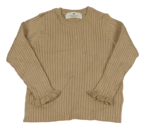 Béžový žebrovaný úpletový oversize svetr s volánky H&M