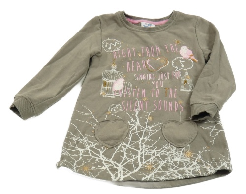 Šedá tepláková tunika s ptáčky a nápisem Topolino