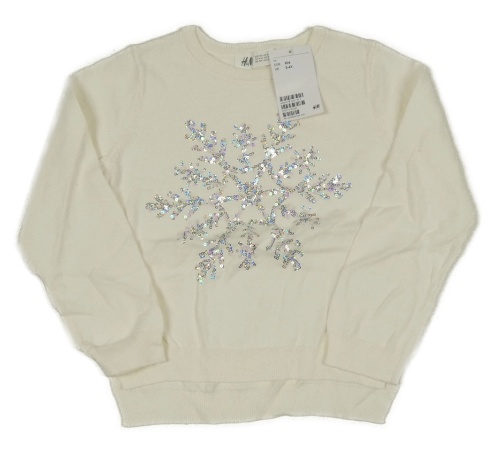 Nové - bílý lehký svetr s vločkou z flitrů H&M