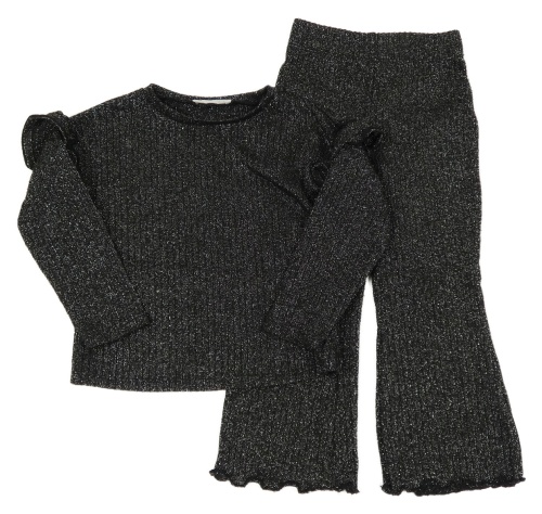 2set - Černý třpytivý žebrovaný svetr s volánky + pletené kalhoty Primark
