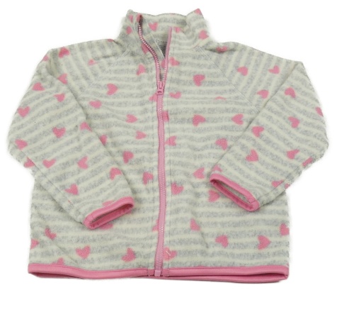 Šedo-růžová pruhovaná fleecová propínací mikina se srdíčky Primark