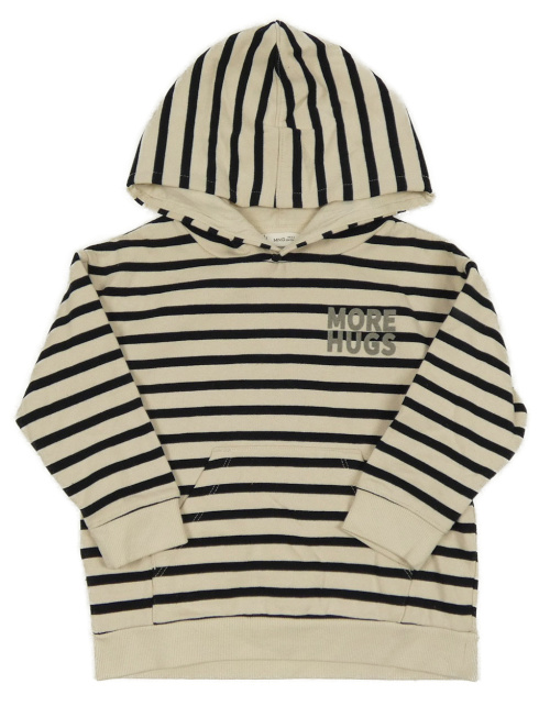 Béžovo-černá pruhovaná mikina s nápisem a kapucí Mango