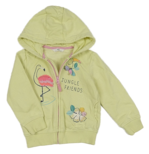 Světležlutá propínací mikina s plameňákem a tukem a flitry a kapucí M&S