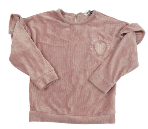 Starorůžová žebrovaná plyšová mikina se srdcem a volánky Pep&Co