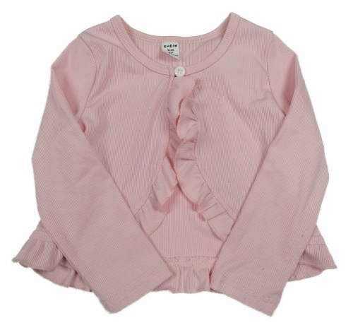 Světlerůžové žebrované propínací bolérko s volánky SHEIN