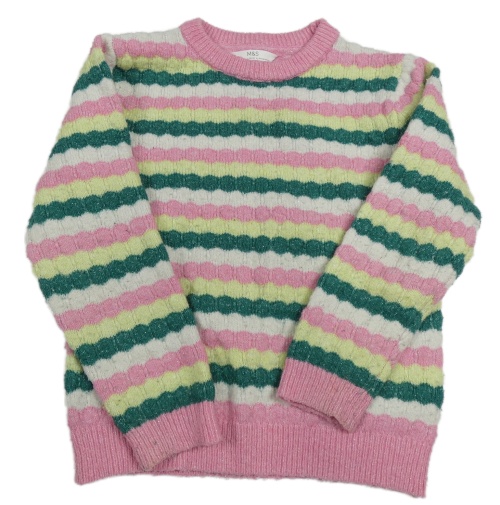 Růžovo-bílo-tmavozeleno-světlezelený pruhovaný/vzorovaný vlněný svetr se třpytkami M&S