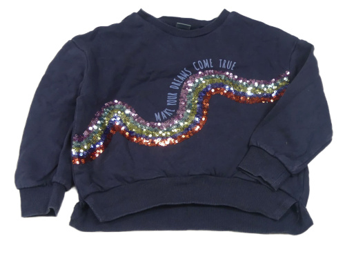 Tmavomodrá mikina s flitry a nápisem Next
